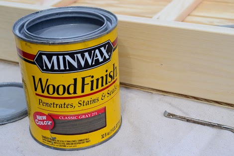 After the planks were cut, I started to stain them using MinWax Classic Gray